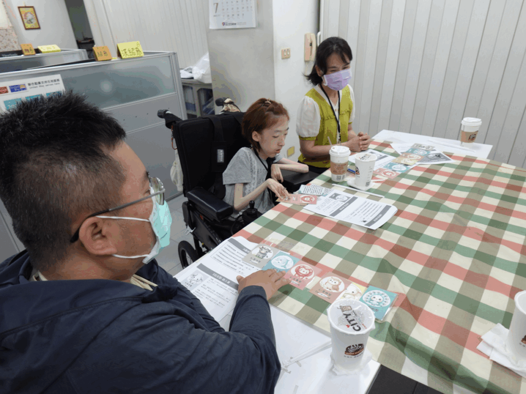 下半場,我們邀請了目前在客服領域工作的夥伴-莊佩蓉來分享她的工作甘苦談,擁有四年的電話客服經驗,自信且深入淺出的表達,令在場的夥伴驚嘆不已。然而,深入了解後卻發現,她在求職過程中屢次遭遇挫折,這些經歷塑造了她不屈不撓的精神,讓她能把每次面試視為珍貴的學習機會,慢慢變得更加自信。夥伴本身也是同儕支持員,與在場的夥伴擁有相仿的背景與經歷,分享了許多寶貴的觀念,包括職務再設計與調整,並進行客服實戰演練,像是如何展開電銷客服與商品介紹,夥伴之間試講再彼此回饋,輪流當起奧客挑戰心理承受極限,也讓夥伴更清楚與認識客服的樣貌。