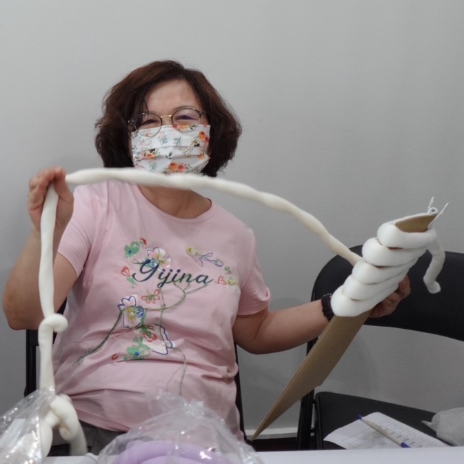 現場不時傳出輕快的笑聲與低聲的口訣:「上、下、上、下」,宛如一場節奏明快的協奏曲。也有參加者幽默地笑說:「這根本是手眼協調與耐心的極限挑戰,還順便練到復健呢!」