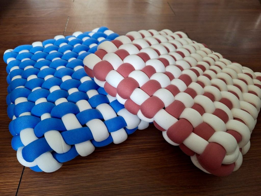 別看坐墊外型簡約,實際上可是暗藏許多細節與技巧!參加者們一邊專注地扭轉毛線,一邊小心確認上下順序,稍有不慎就容易打結「走錯路」。