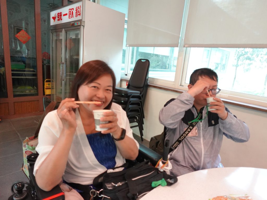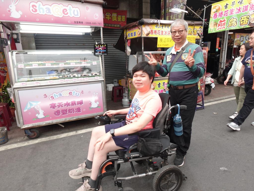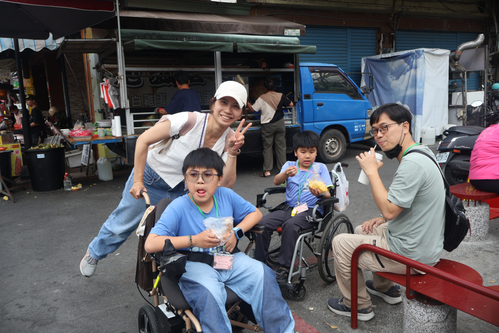 午後,大家拎著彩繪紙傘,在車上應景的歡唱著《一支小雨傘》增添不少樂趣,一路歌聲嘹亮來到旗山老街,這裡曾是「香蕉王國」,家庭成員們興奮不已,開啟了「大採購」模式,夥伴們穿梭街道中,手中滿是收穫,有的沿街品嚐特色美食,有的則坐在涼亭放鬆談天,享受著悠閒的時光。「謝謝你們,今天真的玩得很開心!」看著病友們克服身體限制、熱情參與,這些溫暖的回饋就是對工作人員最大的肯定。感謝美綠生態園與志工夥伴的貼心相伴,夥伴們在老街展現的「好蕉情」,不僅是南區家庭默契的體現,更是當天最美的畫面。這趟旅程讓大家的心靠得更近,也讓我們充飽了電,滿心期待下一次的相聚!
