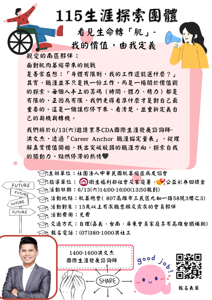 我們將於6/13(六)邀請業界CDA國際生涯發展諮詢師-洪文杰,透過「Career Anchor 職涯錨定量表」,從理解真實價值開始,找出突破瓶頸的職涯方向,探索自我的驅動力,點燃停滯的熱情